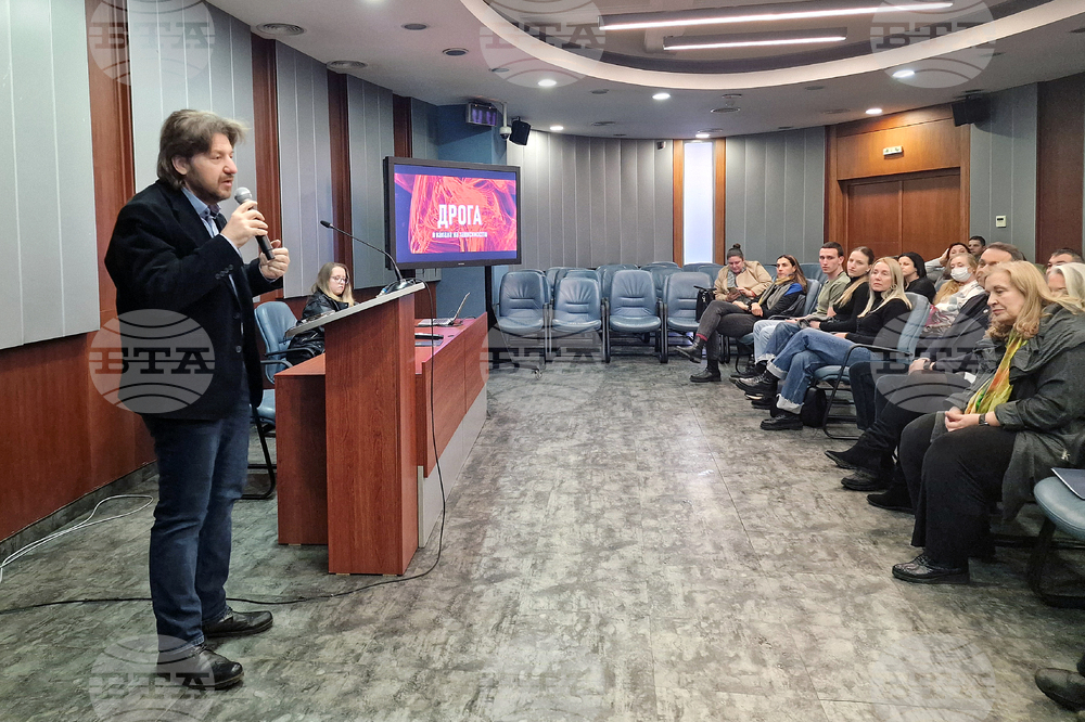 София (20 февруари 2025) Документалният филм „Дрога. В капана на зависимостта“, създаден по инициатива на Местната комисия за борба срещу противообществените прояви на малолетни и непълнолетни (МКБППМН) към СО - район „Слатина“ представя разкази на хора, които са се сблъскали с наркотиците, както и професионални мнения на психиатър, психолог, експерти от Агенция „Митници“ и Факултета по педагогика на СУ „Св. Климент Охридски“. На снимката: продуцентът на филма Анелия Тошева (вляво).