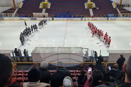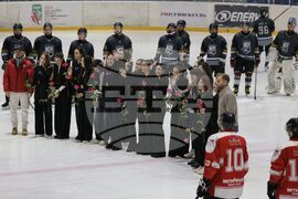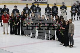 София (20 февруари 2025) Втори мач от финалните плейофи за титлата в първенството на България по хокей на лед между отборите на НСА и ЦСКА. Преди срещата хокеистите от двата отбора поздравиха с връчване на цветя момичетата от женският национален отбор по хокей на лед, спечелили златен медал на световното първенство през февруари в Сараево, Босна и Херцеговина.