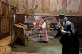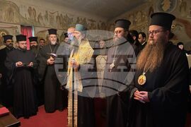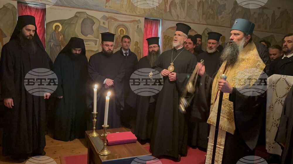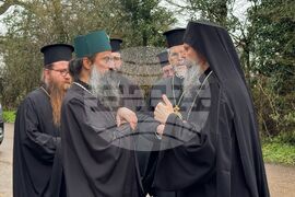Есекс (22 февруари 2025) Негово Светейшество българският патриарх и Софийски митрополит Даниил и архиереи отслужиха заупокойна молитва за всички починали в храма “Вси Светии” на православния манастир “Свети Йоан Кръстител” в Есекс, Великобритания. На църковното събитие присъства и генералният директор на БТА Кирил Вълчев. Игуменът на православния манастир “Свети Йоан Кръстител” в Есекс архимандрит Петър (родом от Кавала, Гърция) приветства българския патриарх Даниил със слово в храма “Свети Силуан Атонски“ към манастира. В манастира “Свети Йоан Кръстител” има общо 5 храма, 22 монаси и 32 монахини. На снимката: патриарх Даниил (вляво), архимандрит Петър (вдясно).