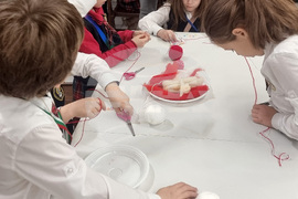 Плевен (25 февруари 2025) В Регионалния исторически музей на Плевен отвори врати работилница за изработване на мартеници. Тази година в нея са записани около 200 деца от училища и детски градини. Заниманията са организирани от специалистите в отдел „Етнография“. Една от групите, дошли да се научат как да изработват мартеници, беше от първокласници на Начално училище „Патриарх Евтимий“. Помощ им оказаха деветокласници от Професионалната гимназия по туризъм. На снимката: