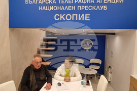 Скопие (25 февруари 2025) Националният пресклуб на БТА в Скопие се включи в представянето на февруарския брой на списание „ЛИК“ на Българската телеграфна агенция (БТА), озаглавен „БНР 90 години по-късно“, с участието на журналиста Владимир Перев (вляво) и кореспондента на БТА в Скопие Маринела Величкова (вдясно).
