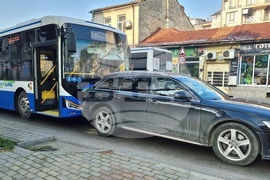 Варна (26 февруари 2025) Катастрофа между автобус на Градски транспорт - Варна и лек автомобил затрудни движението по ул. „Д-р Пискюлиев” във града. Произшествието е само с материални щети.