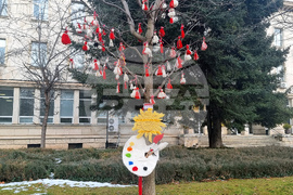 За всяко едно учебно заведение от местната управа са обозначили дървета в центъра на града. От там насетне на ход са децата - да украсят с мартеници, с пролетни цветя и птици, изработени от прежда, с макети на Баба Марта. По този начин Плевен вече се „облича“ в червено-бяла премяна.