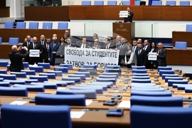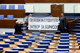 София (27 февруари 2025) Заседанието на парламента започна с декларация на „Възраждане“, мнозинството от депутатите отново напуснаха залата. Вътре останаха само парламентарните групи на „Възраждане“ и „Морал, единство, чест“.