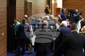 София (27 февруари 2025) Заседанието на парламента започна с декларация на „Възраждане“, мнозинството от депутатите отново напуснаха залата. Вътре останаха само парламентарните групи на „Възраждане“ и „Морал, единство, чест“. На снимката: депутатите напускат зала.
