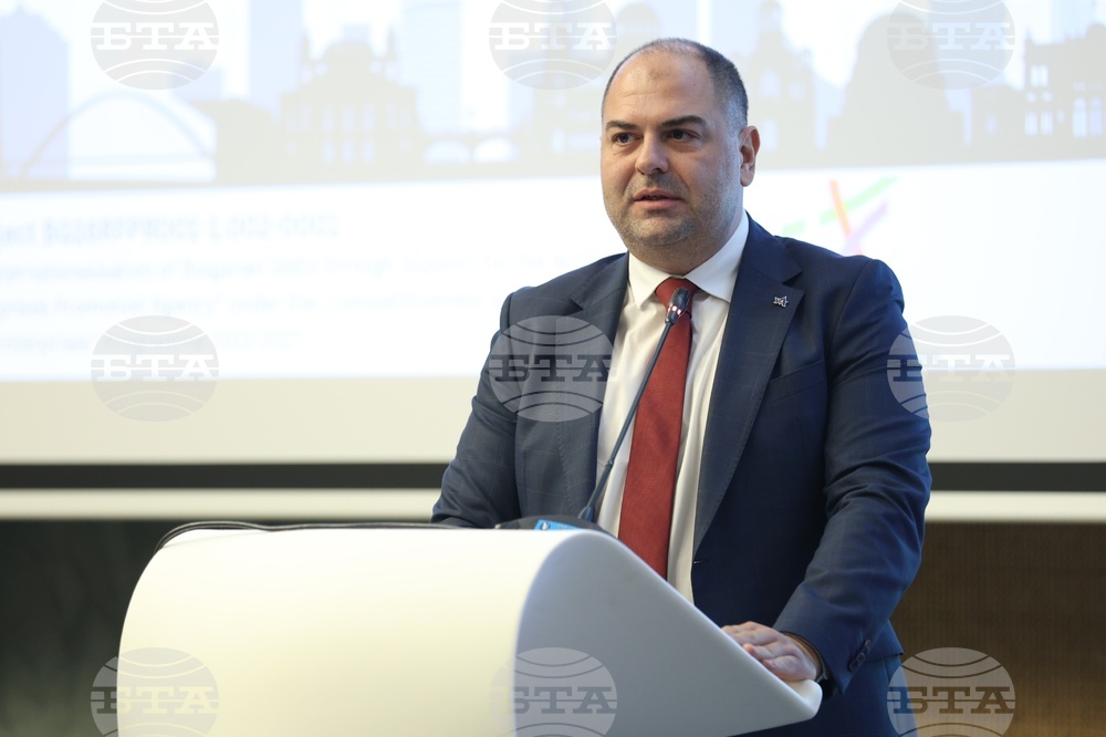 София (27 февруари 2025) Американската търговска камара в България и Изпълнителната агенция за насърчаване на малките и средните предприятия в България организират конференция Explore U.S. в хотел „Хилтън София“. На снимката: министърът на икономиката и индустрията Петър Дилов.