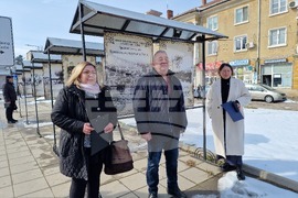 Разград (27 февруари 2025) Директорът на Регионалния исторически музей в Разград Таня Тодорова (вляво) и началникът на Държавния архив в Разград Габриела Михайлова (вдясно) представиха уличната изложба „Значими годишнини от историческия календар на Разград“. Експозицията е подредена в пространството до Панчоолу моста. В пресконференцията участва и уредникът в отдел „Най-нова история“ към музея Нено Якимов (в средата).