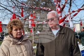 Разград (27 февруари 2025) Деца украсиха с мартеници Дървото на Европа в центъра на Разград. В очакване на празника на Баба Марта художниците от Школата по изобразително и приложно изкуство към Центъра за работа с деца закичиха клоните му с ръчно изработени от тях мартеници. Инициативата да украсяват всяка година за Първи март дървото е дългогодишна традиция на детския център и на общинското предприятие „Паркстрой“. На снимката (от ляво надясно): директорът на Центъра за работа с деца Даниела Куртева и директорът на общинското предприятие "Паркстрой" Иван Борисов.