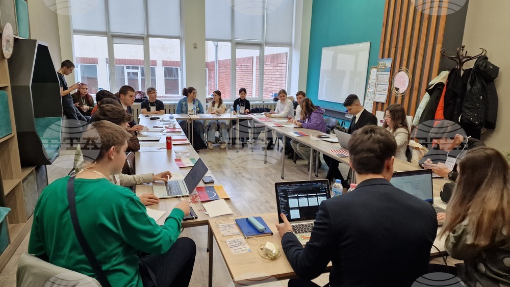 Шумен (1 март 2025) Градският ученически парламент към Центъра за подкрепа за личностно развитие - Обединен детски комплекс „Анастас Стоянов“ - Шумен организира на 1 и 2 март в Регионалната библиотека „Стилиян Чилингиров" ролева игра "Модел ООН – Съвет за сигурност - „Кризата във Венецуела“. Тя пресъздава начина, по който функционира Съветът за сигурност към ООН. Христо Малчев (вляво), главен секретар на Младежка секция на Дружество за ООН в България и Ния Атанасова (вдясно), доброволец в организацията, са модератори на събитието, в което участват около 26 ученици между осми и дванадесети клас.