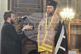 Видин (3 март 2025) Видинският митрополит Пахомий (вдясно) отслужва велико повечерие с първа част на канона на св. Андрей Критски в катедралния храм „Св. вмчк Димитър Солунски“ във Видин.