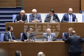 София (5 март 2025) ППарламентът обсъжда на първо четене Законопроекта за държавния бюджет на Република България за 2025 г. В пленарната зала са министри от кабинета и представители на съдебната власт.