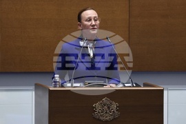 София (5 март 2025) Парламентът обсъжда на първо четене Законопроекта за държавния бюджет на Република България за 2025 г. В пленарната зала са министри от кабинета и представители на съдебната власт. На снимката: министърът на финансите Теменужка Петкова.