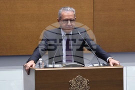 София (5 март 2025) Парламентът обсъжда на първо четене Законопроекта за държавния бюджет на Република България за 2025 г. В пленарната зала са министри от кабинета и представители на съдебната власт. На снимката: секретарят на парламентарната група на „ДПС - Ново начало“ Елван Гюркаш.