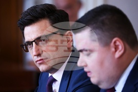 София (6 март 2025) Представители на партия „Продължаваме Промяната” дават пресконференция на тема „Истината за Плана за възстановяване и устойчивост”. На снимката (от ляво надясно): Венко Сабрутев и Стою Стоев.