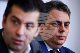 София (6 март 2025) Представители на партия „Продължаваме Промяната” дават пресконференция на тема „Истината за Плана за възстановяване и устойчивост”. На снимката (от ляво надясно): Кирил Петков и Асен Василев.