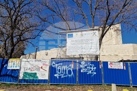 София (6 март 2025) Брифинг на общински съветници от групата на ГЕРБ-СДС в СОС пред сградата на театър „София”.