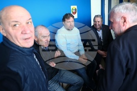 София (7 март 2025) Учредяване на футболен клуб Левски-ветерани се провежда в сектор „А“ на стадион „Георги Аспарухов“. На снимката: Валери Божинов (вляво). На снимката са още Валери Домовчийски и Веселин Минев.