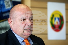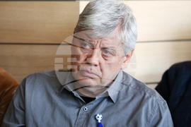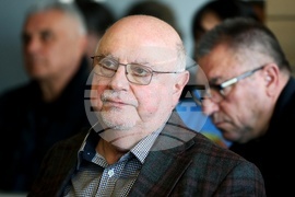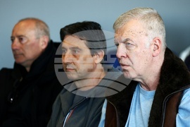 София (7 март 2025) Учредяване на футболен клуб Левски-ветерани се провежда в сектор „А“ на стадион „Георги Аспарухов“. На снимката: Велислав Вуцов (в средата). Вляво е Пламен Николов, а вдясно от Вуцов Стефан Стайков.