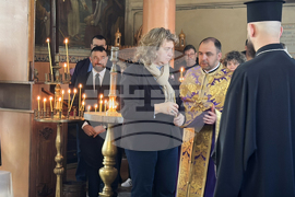 Казанлък (8 март 2025) На Тодоровден Негово Високопреосвещенство Старозагорският митрополит Киприан възглави архиерейска света Литургия в храма „Св. Троица“ в родния си град Казанлък, с която отбеляза тържествено 49-ия си рожден ден. С него съслужиха Техни Преосвещенства Велички епископ Сионий, Велбъждски епископ Исаак, Маркианополски епископ Богослов и свещенослужители от Старозагорска епархия. Специален гост на службата беше председателят на Народното събрание доц. Наталия Киселова. На снимката: Негово Високопреосвещенство Старозагорски митрополит Киприан (в средата), председателят на Народното събрание Наталия Киселова (вляво), кметът на Община Казанлък Галина Стоянова (вдясно).