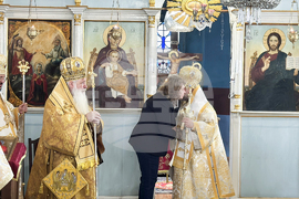 Казанлък (8 март 2025) На Тодоровден Негово Високопреосвещенство Старозагорският митрополит Киприан възглави архиерейска света Литургия в храма „Св. Троица“ в родния си град Казанлък, с която отбеляза тържествено 49-ия си рожден ден. С него съслужиха Техни Преосвещенства Велички епископ Сионий, Велбъждски епископ Исаак, Маркианополски епископ Богослов (в средата) и свещенослужители от Старозагорска епархия. Специален гост на службата беше председателят на Народното събрание доц. Наталия Киселова.