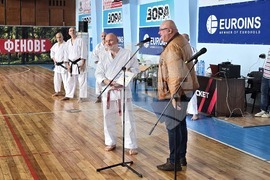 Видин (10 май 2025) Видин е домакин на балкански семинар по карате. Участниците са от 12 града в България, Румъния, Сърбия и Северна Македония. На снимката: шихан Тони Петров, главен инструктор на Централен полицейски карате и джу джицу клуб и кмета на Община Видин д-р Цветан Ценков (вдясно).