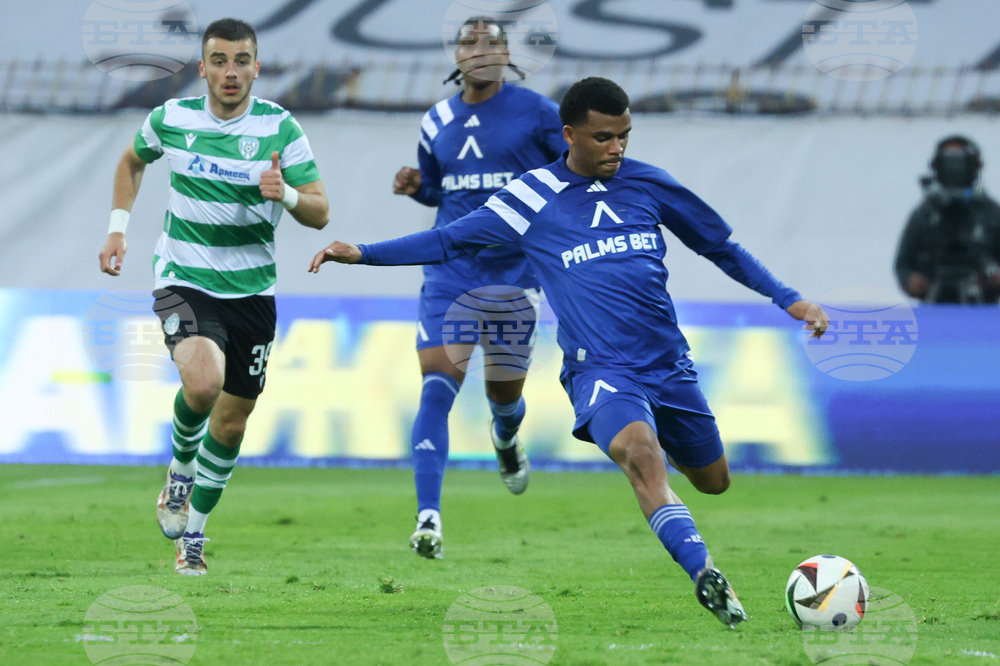 София (10 май 2025) На стадион "Георги Аспарухов“ се играе футболна среща между отборите на „Левски“ (София) и „Черно море“ (Варна), двубой от кръг за влизане в шампионата.