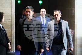 София (28 май 2025) Депутати влизат в пленарната зала преди редовно заседание на Народното събрание. На снимката: депутатът от Парламентарна група "Възраждане" Цончо Ганев (вдясно).
