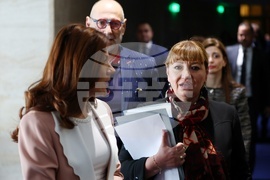 София (28 май 2025) Депутати влизат в пленарната зала преди редовно заседание на Народното събрание. На снимката: депутатът от Парламентарна група "Величие" Стилиана Бобчева (вдясно).