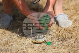 Симитли (27 юли 2025) Местни жители, дошли в района на пожара край град Симитли се опитваха да помогнат и на животните, обитаващи района. Гергана Ралинска от Симитли показа спасена от нея костенурка. Жената разказа за БТА, че синът ѝ е сред първите доброволци в района на пожара, отзовали се на призива да помогнат за овладяване на огнената стихия.