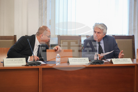 София (11 септември 2025) Комисията за контрол над службите за сигурност, прилагането и използването на специалните разузнавателни средства и достъпа до данните по Закона за електронните съобщения не проведе редовното си заседание в Народното събрание. На снимката: и.д. председателят на Държавна агенция „Национална сигурност“ Деньо Денев (вляво) и директорът на Регионална дирекция ДАНС – Варна Димитър Димитров (вдясно).