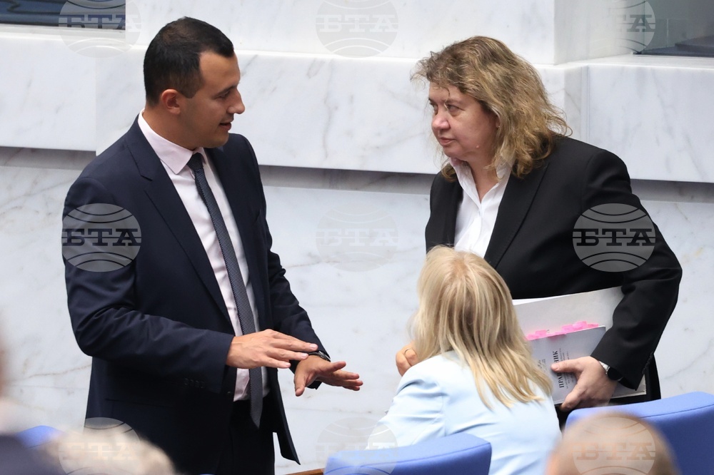 София (17 септември 2025) Парламентът провежда редовно заседание в сградата на Народното събрание. Днес депутатите дебатират по петия вот на недоверие към правителството с министър-председател Росен Желязков във връзка с „провала в секторите вътрешна сигурност и правосъдие, водещ до задълбочаване на проблема със завладяната държава“. На снимката: народният представител от ПП-ДБ Елисавета Белобрадова и Кристина Петкова (вдясно).