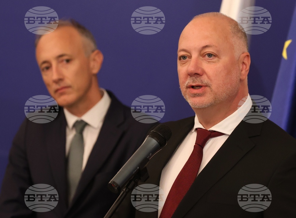 София (18 септември 2025) В гранитна зала на Министерски съвет министър-председателят връчва отличия на българските ученици, спечелили медали от международни олимпиади по природни науки през 2025 г. Присъстват премиерът Росен Желязков (втори отляво) и министърът на образованието и науката Красимир Вълчев (вляво).