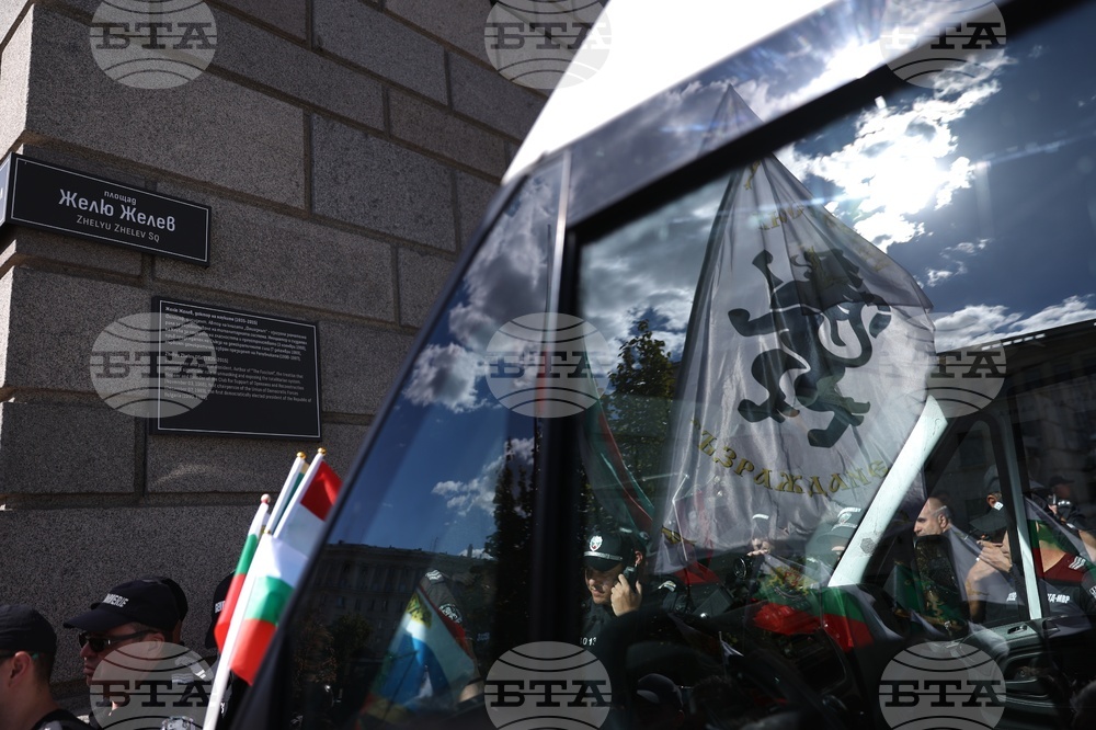 София (18 септември 2025) Привърженици на партия „Възраждане“ простестират в района на Народното събрание.