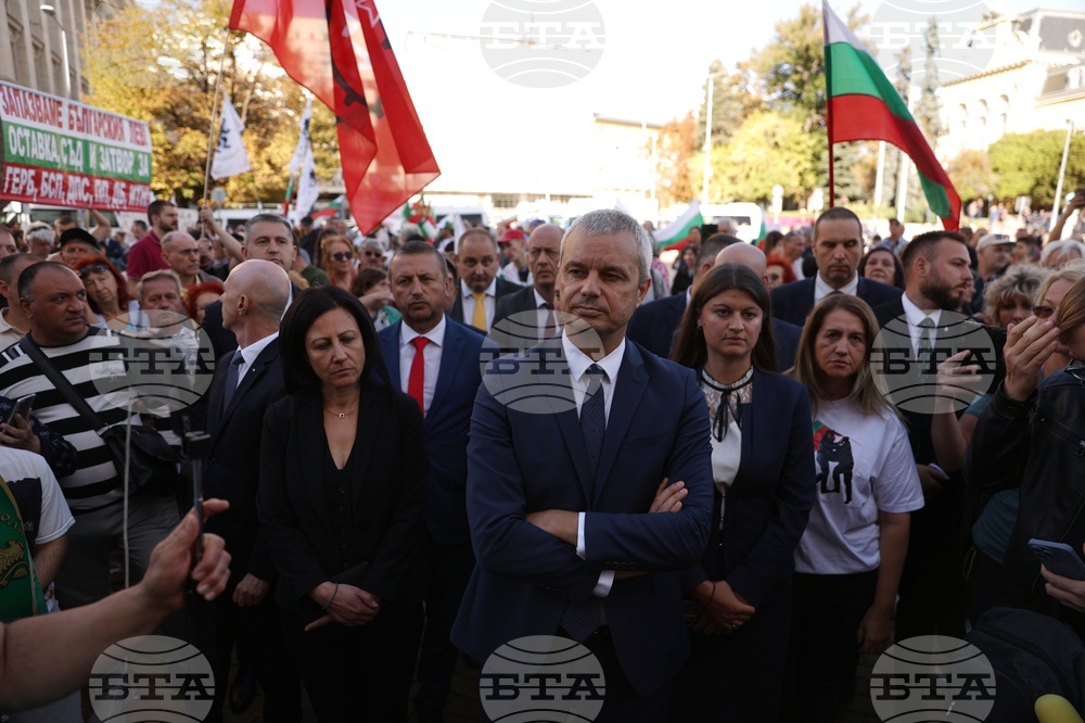 София (18 септември 2025) Привърженици на партия „Възраждане“ простестират в района на Народното събрание. На снимката: председателят на ПП „Възраждане” Костадин Костадинов .