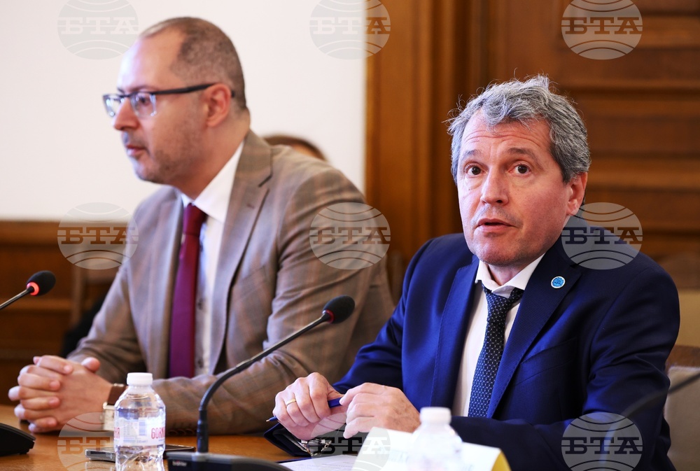София (18 септември 2025) В сградата на Народното събрание се провежда заседание на Комисията по културата и медиите. На снимката: заместник-министърът на културата Тодор Чобанов (вляво) и министърът на културата Мариан Бачев (вдясно).
