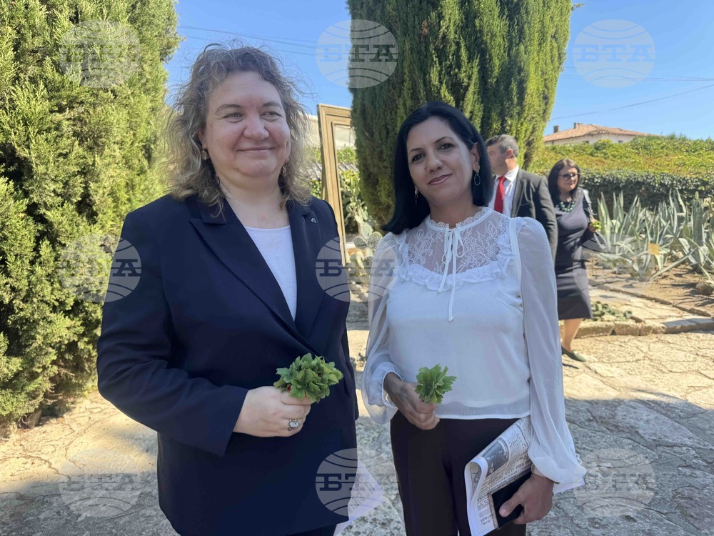 Балчик (21 септември 2025) Ботаническата градина, културен център "Двореца" и Исторически музей - Балчик честват 85 години от възвръщането на Южна Добруджа към България. На снимката (от ляво надясно): председателят на Народното събрание Наталия Киселова, генералният директор на Информационната агенция „Арменпрес“ Нарине Назарян.