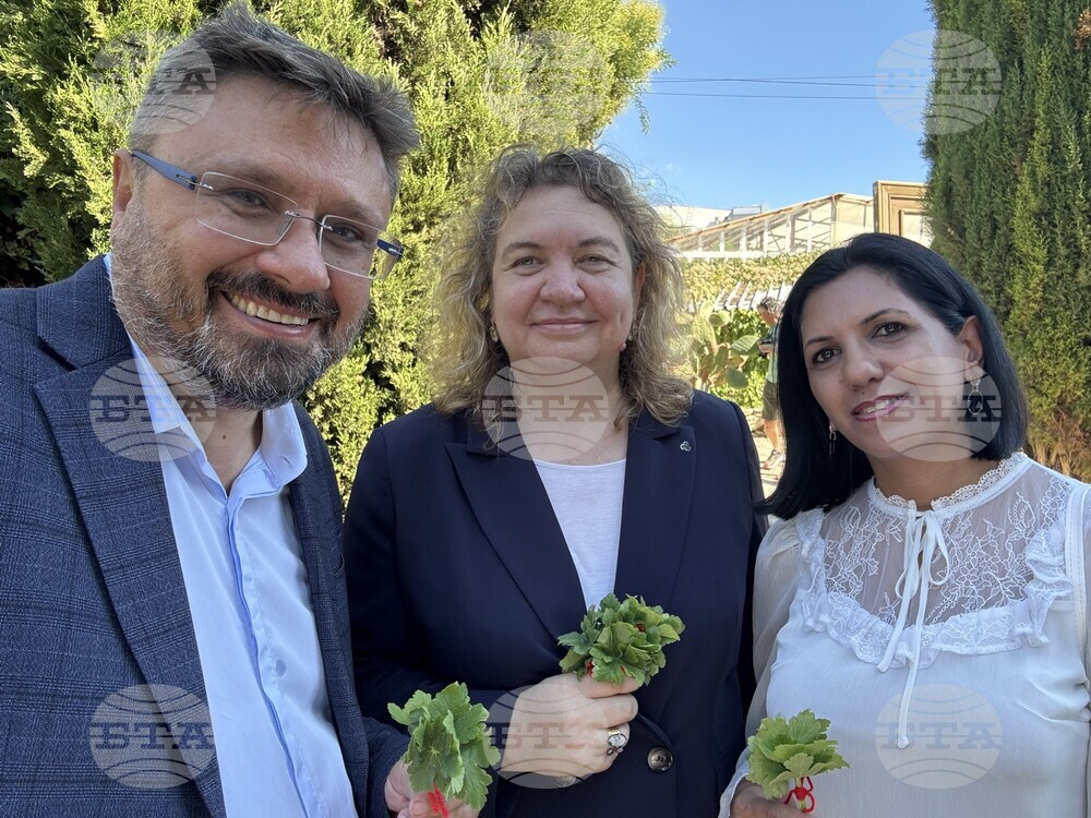 Балчик (21 септември 2025) Ботаническата градина, културен център "Двореца" и Исторически музей - Балчик честват 85 години от възвръщането на Южна Добруджа към България. На снимката (от ляво надясно): генералният директор на БТА Кирил Вълчев, председателят на Народното събрание Наталия Киселова, генералният директор на Информационната агенция „Арменпрес“ Нарине Назарян.