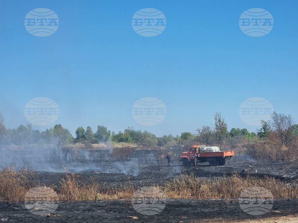 Село Ясен (23 септември 2025) Продължава гасенето на тлеещи огнища от пожара на територията на блатата между плевенските села Ясен и Дисевица. Пожарникари обливат мястото с вода, очаква се помощ и от доброволци. Пожарът е в зона по НАТУРА 2000. На снимката: управителят на бившата рафинерия "Плама" Росен Софрониев и общинският съветник Ивайло Петров.