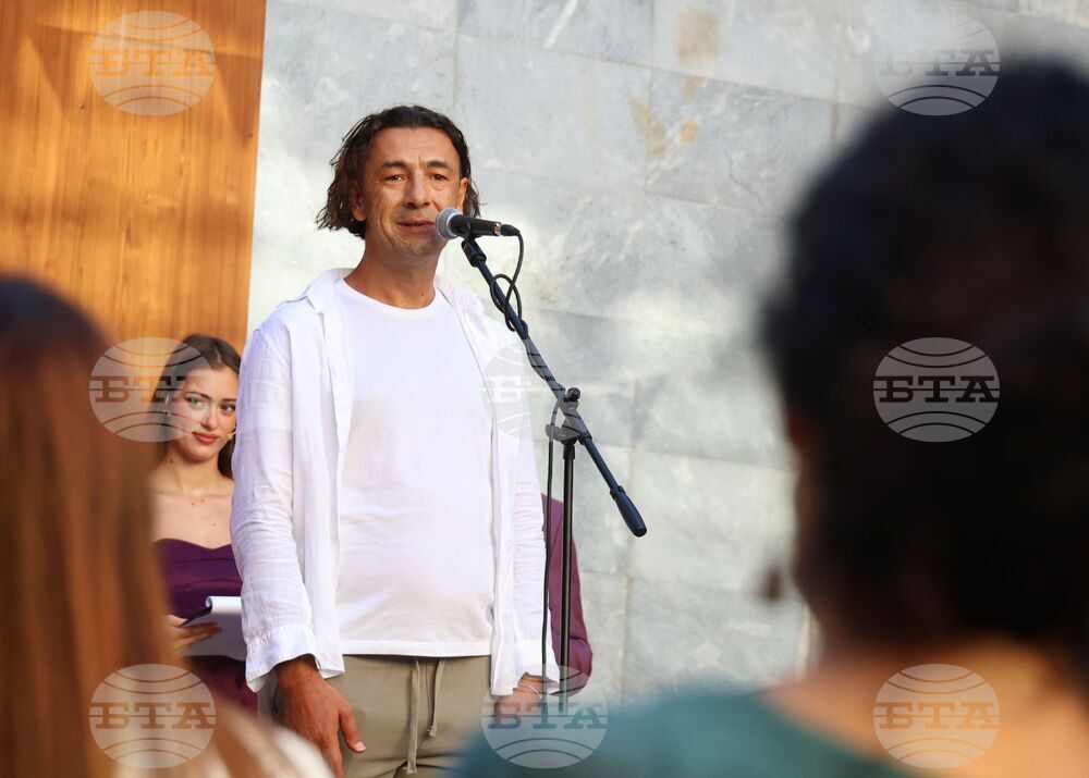 Бургас (23 септември 2025) В Културен дом „НХК“ се провежда церемония по откриване на Филиал Бургас на Националната академия за театрално и филмово изкуство (НАТФИЗ) „Кръстьо Сарафов“ и откриване на новата учебна година. Събитието включва представяне на екипа, който ще преподава в Бургас, тържествен водосвет и музикална програма. На снимката: директорът на Филиал Бургас на НАТФИЗ „Кръстьо Сарафов“ Александър Манджуков.