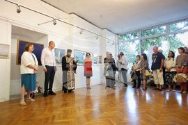Бургас (23 септември 2025) Дружеството на бургаските художници представя сборна изложба живопис под надслов „Те са още между нас". Експозицията е възпоменателна и включва творби на бургаски художници, които са починали през последните две десетилетия. Включени са произведения на Божидар Калъчев, Виолета Масларова, Георги Баев, Георги Янакиев, Дамян Заберски, Дечко Стоев, Иван Попов, Ирена Иванова, Климент Атанасов, Кирил Симеонов, Красимир Зинин, Кръстю Тодоров-Кеца, Лидия Кунева, Лора Янева, Ненко Токмакчиев, Николай Янакиев, Огнян Петков, Роджер Краев, Руси Стоянов, Стоян Цанев, Тодор Атанасов, Тодор Евгениев. На снимката: молитва чете свещеник Стелиян Кунев.