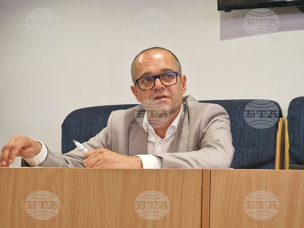Димитровград (24 септември 2025) Пред пълната зала „Гросето“ в Димитровград представители на Комисията за защита на потребителите (КЗП) и Националната агенция по приходите (НАП) дадоха подробна информация и отговориха на въпроси, свързани с условията и особеностите по въвеждането на еврото като основна валута в България от първи януари 2026 година. Срещата е част от информационната кампания на КЗП и НАП. На снимката: изпълняващият длъжността председател на КЗП Александър Колячев.