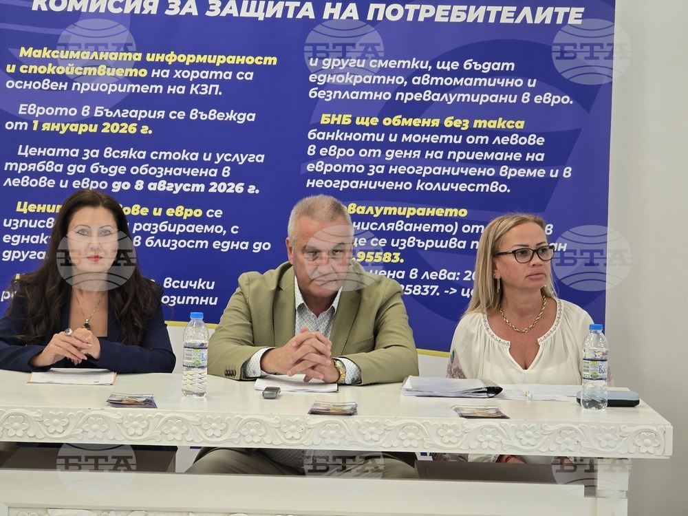 Луковит (25 септември 2025) Информационна кампания за въвеждане на единната европейска валута на Министерство на финансите и Българската народна банка се провежда в Луковит. В нея участват Цветислава Лакова (вляво) – член на Комисията за защита на потребителите (КЗП), Красимира Иванова (вдясно) – главен инспектор в КЗП за област Ловеч, Валентин Вълков (в средата) – директор на офиса на Националната агенция за приходите в Ловеч, и Цветослава Атанасова – областен координатор на Регионалния съвет на Конфедерацията на независимите синдикати в България (КНСБ) в област Ловеч. Срещата откри Камелия Кандева – секретар на Община Луковит.