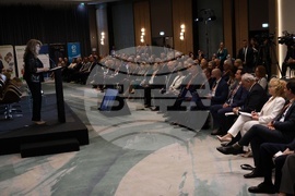 София (30 септември 2025) в хотел "Хилтън“ се провежда национална конференция „Компас 2025“ с акцент върху големите проекти в българската енергетика, разглеждани през призмата на геополитиката, националната сигурност и дипломацията. На снимката: народният представител от ГЕРБ-СДС Йорданка Фандъкова.