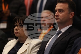 София (30 септември 2025) в хотел "Хилтън“ се провежда национална конференция „Компас 2025“ с акцент върху големите проекти в българската енергетика, разглеждани през призмата на геополитиката, националната сигурност и дипломацията. На снимката: министърът на енергетиката Жечо Станков (вдясно) и министърът на финансите Теменужка Петкова (вляво).