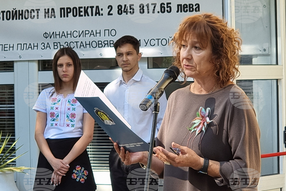 Ямбол (30 септември 2025) Откриване на Център за високи постижения в професионалното образование и обучение в Професионалната техническа гимназия „Иван Райнов” в Ямбол. Близо 3 млн. лева са инвестирани в обзавеждането и оборудването на 14 специализирани кабинети. Финансирането е проект, защитен от училището по Националния план за възстановяване и устойчивост. На церемонията присъстват представители на местната и държавната власт, на фирми - партньори на гимназията, директори на училища и др. Възпитаници на гимназията представят на гостите високотехнологичното оборудване в новите кабинети. На снимката: директорът на техническата гимназия Емилия Кремъкова (втора отдясно).