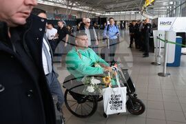 София (30 септември 2025) На Летище "Васил Левски" пристигна световния шампион от първенството по лека атлетика за параолимпийци Ружди Ружди. На снимката: треньорът на паралимпийския шампион Радостин Тодоров.