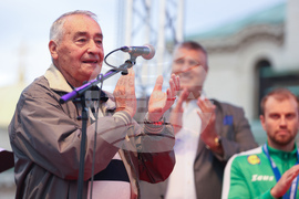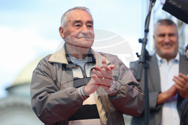 София (30 септември 2025) Посрещане на волейболистите от Националния отбор на България, които спечелиха сребърни медали на шампионата на планетата във Филипините, се провежда на площада пред храм-паметник „Свети Александър Невски”. На снимката: Любомир Ганев.