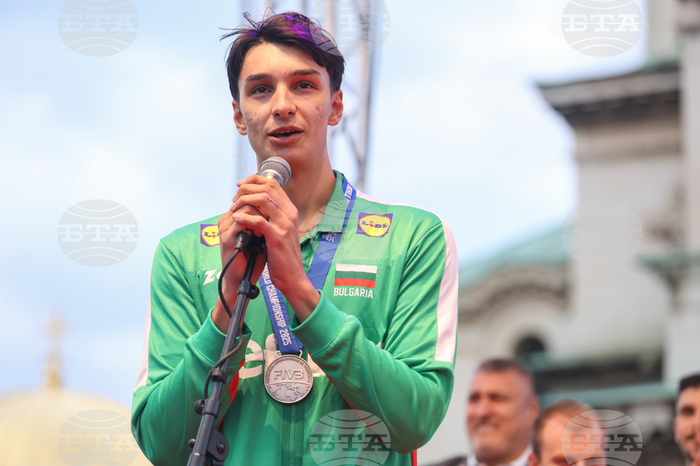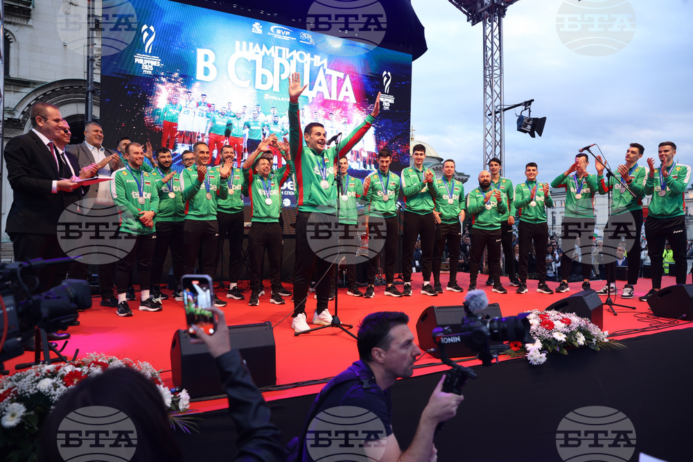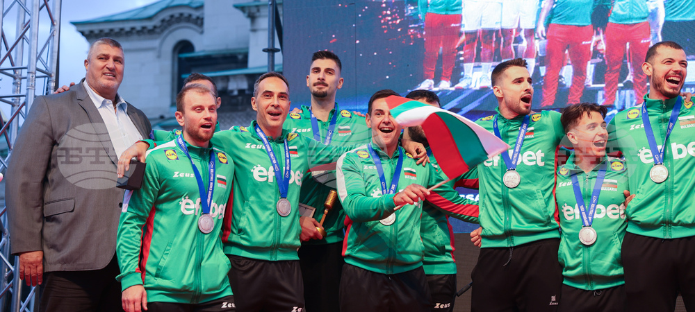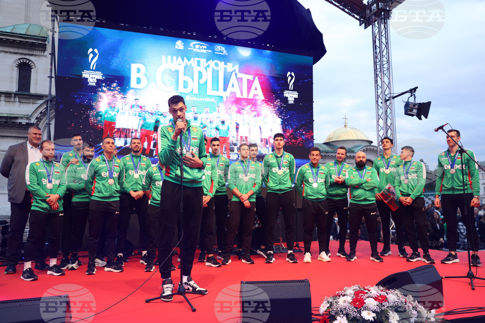 София (30 септември 2025) Посрещане на волейболистите от Националния отбор на България, които спечелиха сребърни медали на шампионата на планетата във Филипините, се провежда на площада пред храм-паметник „Свети Александър Невски”.