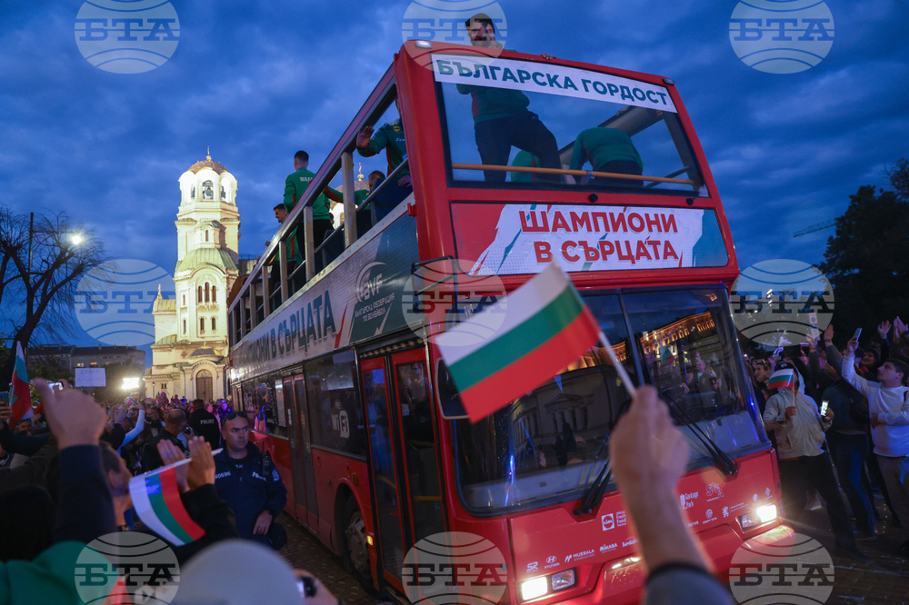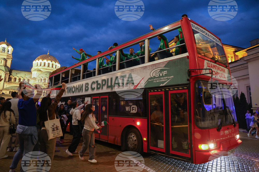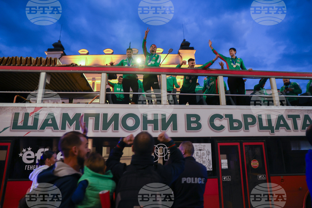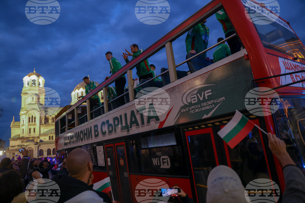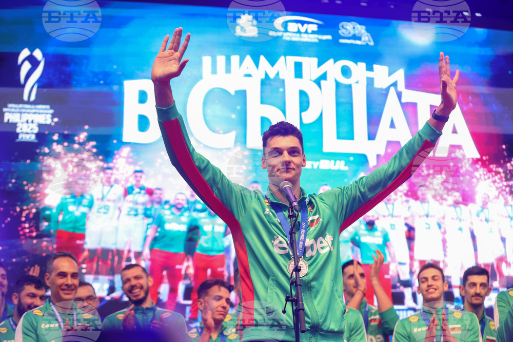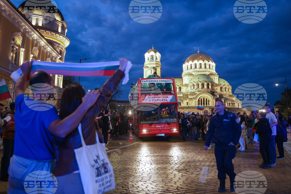 София (30 септември 2025) Посрещане на волейболистите от националния отбор на България, които спечелиха сребърни медали на шампионата на планетата във Филипините се провежда пред "Александър Невски".