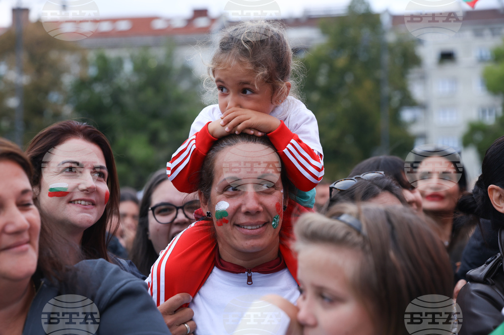 София (30 септември 2025) Посрещане на волейболистите, които спечелиха сребърни медали на шампионата на планетата във Филипините се провежда пред "Александър Невски".